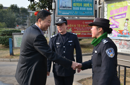 東華集團董事長、黨委書記、總經理金克緒帶領第一慰問小組,首先來到八公山物業(yè)分公司轄區(qū)——勞動村和八公山新村,并代表集團公司向堅守在一線崗位的員工們表示節(jié)日的問候。金總與小區(qū)工作人員親切握手,噓寒問暖,他說:“你們辛苦了,你們在節(jié)日期間堅守崗位,用辛勤的汗水換來小區(qū)的安全與潔凈,你們的奉獻精神是可貴的!苯鹂傔要求八公山物業(yè)分公司領導要合理安排好員工們的休息,保持充沛的精力,更好地為業(yè)主服務。隨后,金總來到謝家集物業(yè)分公司轄區(qū)——新家園小區(qū)及東村小區(qū),親切地慰問了清掃炮紙和門衛(wèi)的員工們,并與他們握手祝福,詢問他們的生活情況,工作情況;金總還要求謝家集物業(yè)分公司的領導要安排好節(jié)日期間員工的工作與休息,既要加強小區(qū)保潔、保安,又要保證員工們得到很好的休息。