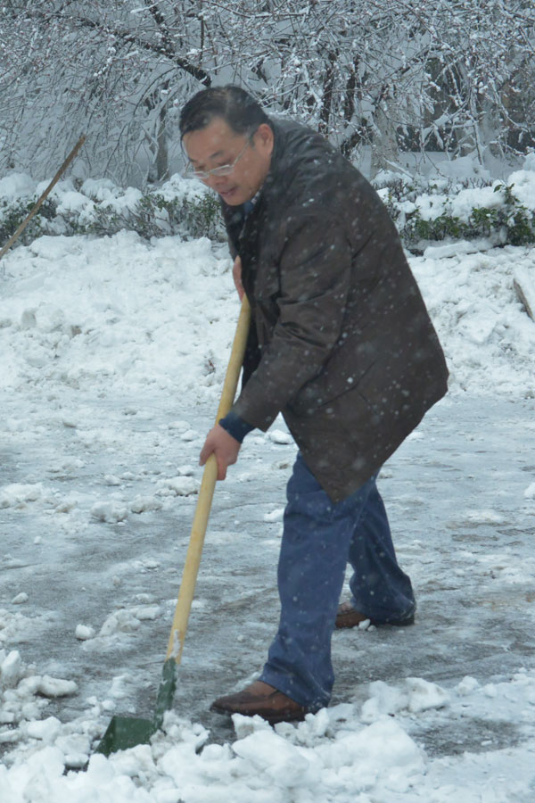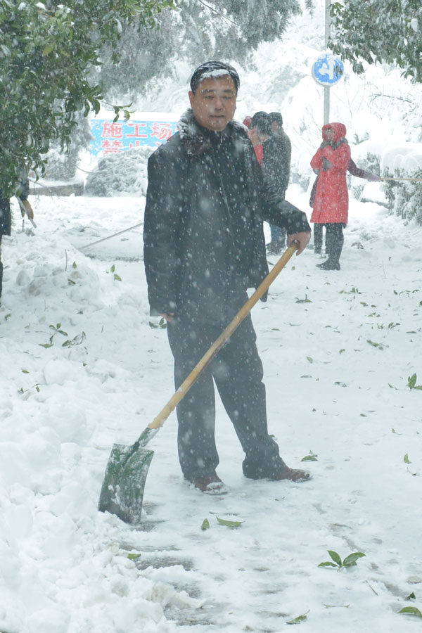 在礦業(yè)集團(tuán)機(jī)關(guān)大院內(nèi),黨委書(shū)記、董事長(zhǎng)金克緒手持鐵鍬一鏟一鏟將道路積雪清除,機(jī)關(guān)工作人員在他的帶領(lǐng)下,不顧嚴(yán)寒,冒雪大干,經(jīng)過(guò)三個(gè)小時(shí)的奮戰(zhàn),終將道路積雪鏟除。工作人員還對(duì)院內(nèi)大樹(shù)上的積雪進(jìn)行清除,防止積雪壓斷樹(shù)枝。