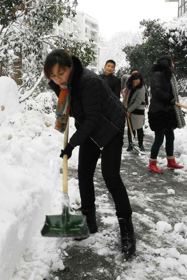經(jīng)過(guò)3個(gè)多小時(shí)的辛勤勞動(dòng),皚皚白雪中一條條道路顯得格外醒目,讓業(yè)主感動(dòng)不已,紛紛表達(dá)謝意。