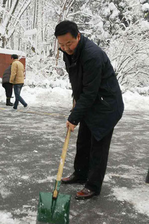 集團(tuán)公司黨委書記、董事長金克緒親自帶領(lǐng)工作人員為業(yè)主掃雪