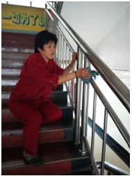 保潔工作是一項(xiàng)單調(diào)重復(fù)的工作,極為枯燥勞人,可是趙艷榮的心態(tài)非常好。由于工作崗位在區(qū)隊(duì)樓,來(lái)來(lái)回回的礦工很多,剛剛拖干凈的地,一批工人過(guò)去,又全印上了粘著煤泥的腳印,但她總是任勞任怨的跟著掃、拖、撿煙頭、倒垃圾……她深知自己的使命就是服務(wù)礦山,為礦區(qū)創(chuàng)造良好的工作壞境。