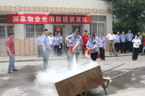 6月6日下午3點(diǎn)30分,在文明村一期居民樓前,隨著一聲響亮的號(hào)令聲,洞泉物業(yè)處消防演練拉開了序幕。