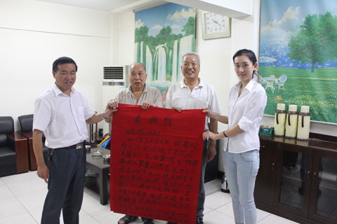 6月7日早晨,天下著傾盆大雨,洞泉處迎來了兩位特殊的老人。他們拿著親筆書寫的感謝信,交到了處領(lǐng)導(dǎo)班子的手中。