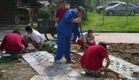 洞泉物業(yè)處洞山新村(上東錦城)小區(qū)成立至今已有多年,小區(qū)綠地多處被損壞,尤其是幼兒園和休閑廣場(chǎng)附近,因?yàn)樵S多家長(zhǎng)經(jīng)常在園外觀看孩子做操和一些室外活動(dòng),損壞尤為嚴(yán)重。這樣既影響小區(qū)的整體美觀,又不利于園外的花草生長(zhǎng)。針對(duì)這種情況,在與業(yè)主委員會(huì)協(xié)商后,該處購(gòu)買來(lái)草坪磚、沙子等材料進(jìn)行修整鋪設(shè)。六月的天氣時(shí)陰時(shí)晴,陰時(shí),悶熱異常,讓人喘不上起來(lái);晴時(shí),陽(yáng)光四射,讓人睜不開(kāi)眼睛。就是在這種環(huán)境下,小區(qū)辦的工作人員齊心協(xié)力開(kāi)始了翻土、找平、鋪磚、砸平……大家干的很賣力,每個(gè)人都汗流浹背,但是沒(méi)有一個(gè)人喊苦叫累。大家心往一處想、勁往一處使,都想著快一點(diǎn)干完,早日完成好方便業(yè)主。在把幼兒園附近的草坪磚鋪設(shè)好以后,大家又一鼓作氣,將健身廣場(chǎng)被損綠地也一并鋪上草坪磚。物業(yè)人員的辛勤付出得到了業(yè)主高度贊揚(yáng)。