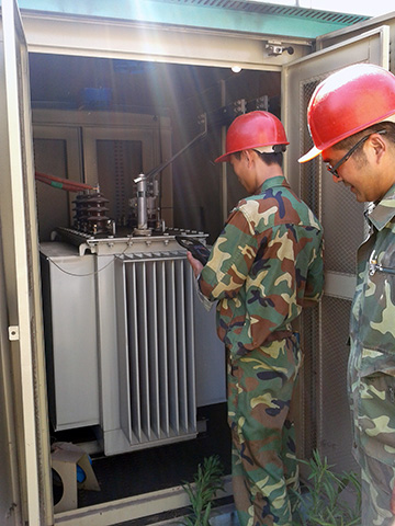 一是加強(qiáng)供電設(shè)備檢查,確保供電設(shè)備完好。每周都安排專人對(duì)各村變壓器及小區(qū)箱變進(jìn)行認(rèn)真細(xì)致的檢修,并詳細(xì)記錄,發(fā)現(xiàn)有變壓器異常過熱現(xiàn)象,及時(shí)辦理停電手續(xù)對(duì)其進(jìn)行更換,確保了設(shè)備的正常運(yùn)行。