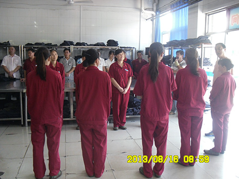 現場學習首先由兩組交接班人員列隊在班長的監(jiān)督下對現場設備設施的安全情況及工作中需注意的事項進行交接,并互囑注意安全;然后洗衣女工為大家演示了收衣、洗衣、烘干、疊衣、上架整個工作流程,手指口述了洗衣、烘干流程,強調了這兩個流程的安全重要性。最后項目部領導對洗衣房提出了創(chuàng)建無止境、揚長避短、精益求精不斷提高服務質量,同時要求其他車間以洗衣房為標桿,認真貫標、執(zhí)標,確保年底全面達標的要求。