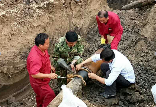 此次搶修任務(wù)緊張繁重,如不及時搶修,不僅影響礦生產(chǎn),也影響生活用水。面對如此險情,東華丁集項(xiàng)目部搶修人員不慌不亂,有序排查,在確定漏水位置后,搶修人員制定了科學(xué)的施工方案,并現(xiàn)場設(shè)置排好反光錐和警戒線。由于漏水管道埋至在地下4米左右,人工開挖費(fèi)時費(fèi)力,搶修人員動用了挖掘機(jī),最困難的是排空管道積水,搶修人員利用潛水泵進(jìn)行管道排水,經(jīng)過三個多小時,管道積水才排空。最后搶修人員爭分奪秒的施工,對爆裂管道進(jìn)行切割、拆除、更換、連接修復(fù)。當(dāng)管道搶修完畢時,已經(jīng)是凌晨了。