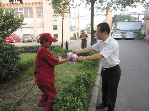 隨著炎炎夏日的到來,室外氣溫更是高達(dá)38℃左右,對于一線工作的員工們來說是對體力和毅力的挑戰(zhàn)。為了保障一線職工們的身體健康,八公山物業(yè)分公司領(lǐng)導(dǎo)立即把防暑降溫工作擺在第一位,積極采取有效措施,廣泛開展“夏日送清涼”活動,確保了高溫時(shí)期一線員工的安全與健康。