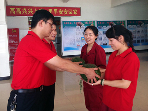 一是班子成員積極深入到班前會(huì)、班中去,隨時(shí)關(guān)注職工們的現(xiàn)場工作環(huán)境狀況,并重點(diǎn)囑咐大家要多喝水,樹立防暑降溫意識。二是針對室外保潔人員的工作強(qiáng)度和時(shí)間進(jìn)行調(diào)整;三是安排維修隊(duì)到浴池、單身宿舍、井口大廳等車間對供電線路、吊扇、空調(diào)進(jìn)行檢查維修,確保所有設(shè)備能正常運(yùn)轉(zhuǎn),保障職工能有一個(gè)清涼的工作和休息環(huán)境,為職工送去絲絲涼風(fēng),同時(shí)叮囑維修隊(duì)人員要隨時(shí)注意自己的安全;四是開展了“送清涼”活動(dòng),購置了西瓜、綠豆、白糖、風(fēng)油精、十滴水、人丹等防暑降溫用品,及時(shí)發(fā)放到基層各崗位職工手中,堅(jiān)持做到每天、每班送清涼不斷線,讓我們的職工都涼在身上,暖在心里,有效的保障了所有職工能安全的度過夏季高溫期。