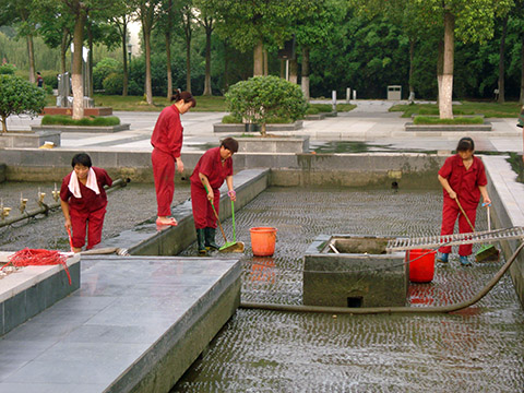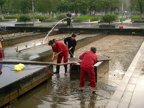 為進(jìn)一步美化礦區(qū)環(huán)境,丁集項(xiàng)目部組織物業(yè)隊(duì)、機(jī)電隊(duì)等單位30多人,頂著高溫酷暑對(duì)丁集礦大型噴泉池進(jìn)行了集中清理,清刷面積2000多平米,工作中每名職工的衣物都被汗水所浸透,經(jīng)過(guò)近四個(gè)小時(shí)的緊張工作,終于把噴泉池保潔一新,為構(gòu)建優(yōu)美礦區(qū)盡到了一份力量,更得到了礦領(lǐng)導(dǎo)的一致好評(píng)。