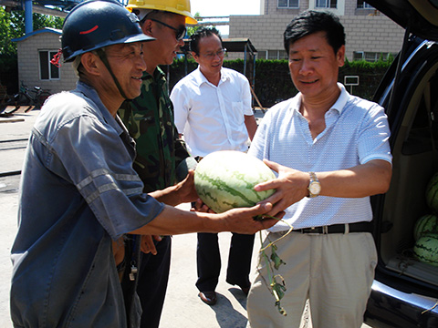 8月7日,雖然已是立秋,但高溫天氣仍舊持續(xù)不斷。為保證職工的人身健康和企業(yè)安全生產(chǎn),東華丁集項(xiàng)目部拿出專項(xiàng)資金,先后購(gòu)置了1000多斤西瓜,由項(xiàng)目部主要領(lǐng)導(dǎo)帶隊(duì),走入基層,深入一線,為在高溫下仍堅(jiān)持工作的職工們送去一份清涼,并囑咐職工要多喝水,注意防暑降溫,體現(xiàn)出東華集團(tuán)“以人為本、關(guān)愛職工”的企業(yè)宗旨和人文情懷。