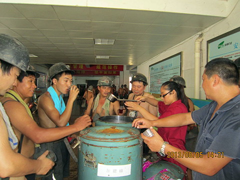 “師傅,來杯綠豆茶,消消暑氣”,每天中午13:00和晚上9:30的井口大廳都能聽到這一聲聲親切的問侯和看到朱集項(xiàng)目部職工忙碌的身影。