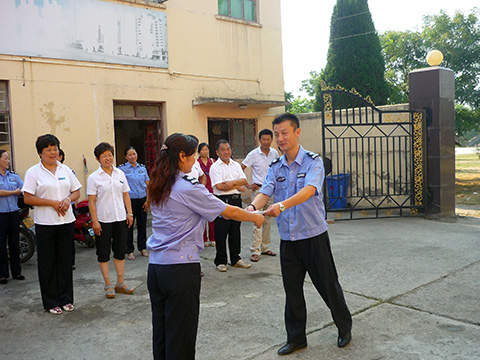 為了強化保安工作儀態(tài)的規(guī)范性,物業(yè)處又聯(lián)系了物業(yè)部王亞軍副部長至桃源居小區(qū),對物業(yè)處所有保安班長進行培訓,在培訓課上,王部長針對標準崗如何站立、如何進行交接班儀式、如何攔車詢問等對保安班長的姿態(tài)規(guī)范性進行指導,并進行了一對一實演練。