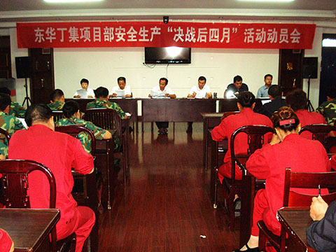 2013年9月3日,東華丁集項目部組織召開了安全生產(chǎn)“決戰(zhàn)后四月”活動動員大會,班隊長以上管理人員參加會議。會上,項目部對集團公司第六次中心組學(xué)習(xí)會精神進行了認真?zhèn)鬟_貫徹,深入總結(jié)了前一階段安全管理工作,并對后四個月安全工作做了重點部署和安排。