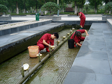 一是組織機電工對礦區(qū)工廣內(nèi)的路燈、景觀燈進行細(xì)致排查、全面亮化,同時,安排專人對所有燈罩進行擦拭清理,去除積塵和污垢,使燈光更明亮、景色更美觀。二是組織保潔員對全礦衛(wèi)生環(huán)境進行一次全面的大整治,重點是樓前樓后、綠化帶、草坪等衛(wèi)生死角,確保礦區(qū)環(huán)境的整潔干凈。三是組織人員對音樂噴泉池進行全面清刷,從噴嘴到水管、從池底的淤泥到池壁的青苔,都被一一清理干凈,在這次清刷工作中,項目部抽調(diào)人員20余人次,清理淤泥、雜物共10余袋,使音樂噴泉池?zé)ㄈ灰恍拢瑝延^、絢麗的噴泉景觀為丁集礦營造出濃厚的節(jié)日氣氛。