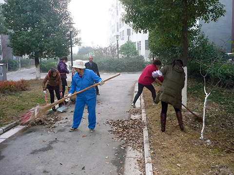 秋冬時(shí)節(jié),落葉紛紛而下,桃源居小區(qū)辦在物業(yè)處的安排下,組織工作人員對(duì)落葉進(jìn)行專項(xiàng)清理,保持小區(qū)優(yōu)美環(huán)境。