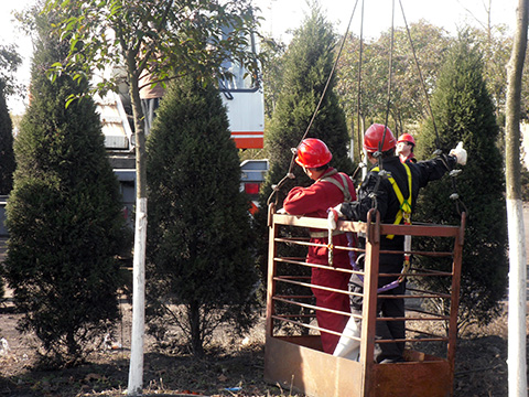 由于高桿燈高達(dá)26米多,為了確保登高作業(yè)安全,該隊在施工前抽調(diào)業(yè)務(wù)骨干,制定了詳細(xì)的施工預(yù)案和安全防護措施,兩名隊長跟班到現(xiàn)場,指揮現(xiàn)場維修工作。參加維修的同志冒著寒風(fēng)借助吊籃在近九層樓高的塔燈頂部進行更換鋼絲繩、橡套電纜,僅用兩天時間完成了全部搶修任務(wù),用高效、優(yōu)質(zhì)的服務(wù)再次贏得礦方的滿意,在礦調(diào)度會上獲得贊譽。