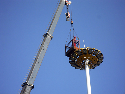 2012年初,經(jīng)過項目部的多方努力,潘北礦將工廣內(nèi)所有景觀燈及高桿燈由舜泉園林轉(zhuǎn)入東華潘北項目部托管維護,由于投入使用時間長,今年在檢修中發(fā)現(xiàn)五處高桿燈均不同程度出現(xiàn)故障,影響工廣照明。為了盡快恢復(fù)礦區(qū)的照明,近日,項目部水電隊利用礦停產(chǎn)檢修期間借來了一臺25噸吊車、吊籃,同時與礦有關(guān)單位協(xié)調(diào),籌集到了不同規(guī)格的鋼絲繩530米、鋼絲繩卡90個、橡套電纜135米等維修材料,對高桿燈進行維修。