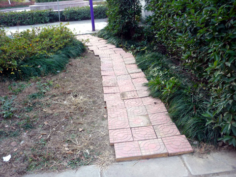 因?yàn)闃I(yè)主從綠化帶內(nèi)抄近道,居仁二區(qū)小廣場的綠化帶內(nèi)被踩出了一條小路,小區(qū)辦多次對(duì)此處進(jìn)行綠化補(bǔ)種,但馬上又被業(yè)主再次踩踏成小路。幾次三番后,物業(yè)處決定在綠化帶內(nèi)用花磚建一條小道,徹底解決這個(gè)問題。