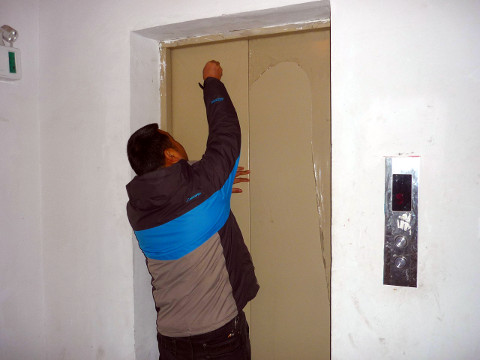 電梯困人施救演練是在基層工作人員不知情的情況下進(jìn)行的,物業(yè)處考核人員分別在居仁一區(qū)、二區(qū)用電梯對(duì)講報(bào)警稱被困,兩個(gè)小區(qū)的工作人員均在對(duì)講內(nèi)仔細(xì)的問清了被困人員被困樓號(hào)、單員、樓層,然后在三分鐘內(nèi)趕到現(xiàn)場(chǎng),對(duì)“被困人員”進(jìn)行安撫,機(jī)電隊(duì)工作人員也隨之在五分鐘內(nèi)趕到現(xiàn)場(chǎng),并在二分鐘內(nèi)用層門鑰匙打開電梯門,救出了“被困人員”,直到這時(shí)他們才發(fā)現(xiàn)被困的竟是“熟人”。