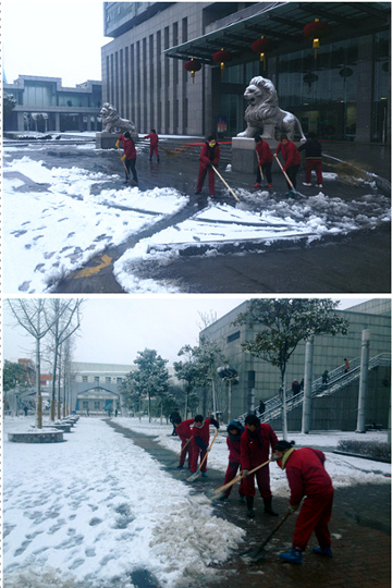 針對惡劣天氣,顧北項目部及時啟動了防雪防滑應(yīng)急預(yù)案,為使礦方工友上班出行不受影響,2月7日一早,天剛蒙蒙亮,分管物業(yè)的蔣經(jīng)理帶著物業(yè)隊的員工們開展了緊急除雪活動,近百名員工拿著鐵鏟和大掃帚在礦各主干道上清除路面積雪。鐵鏟清脆的撞擊聲和人員調(diào)度聲充斥著整個干道,員工的鞋濕了,身上冒了汗,但是大家心里高興,干得特別起勁。想到自己的勞動給礦方工友們帶來了便利,保障了出行安全,員工們都很有成就感。在物業(yè)隊全體員工的努力下,各主干道得到清掃,同時還在樓梯、臺階等重點部位鋪設(shè)了防滑草墊,此項工作的開展得到了礦方領(lǐng)導(dǎo)和工友的一致好評。
