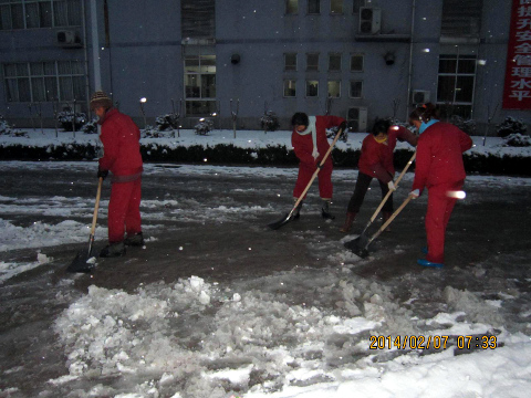 2月7日早晨6:00,大家不顧寒冷,早早來到單位,拿起鐵鍬、掃帚,分工合作,掃的掃、鏟的鏟,干得熱火朝天。積雪松的地方用掃帚推,積雪壓實(shí)的地方就用鐵鍬一點(diǎn)點(diǎn)的鏟除,許多人的手和臉被凍得通紅,然而,這一切絲毫沒有影響大家的勞動(dòng)熱情,經(jīng)過兩個(gè)多小時(shí)的奮戰(zhàn),將礦內(nèi)道路上的積雪打掃得干干凈凈,確保了礦井工作人員及車輛的出行安全,受到了礦方職工的好評(píng)及領(lǐng)導(dǎo)的肯定。